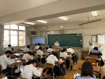午後からの授業です。写真上から、2年生数字、2年生英語、1年生理科の授業です。