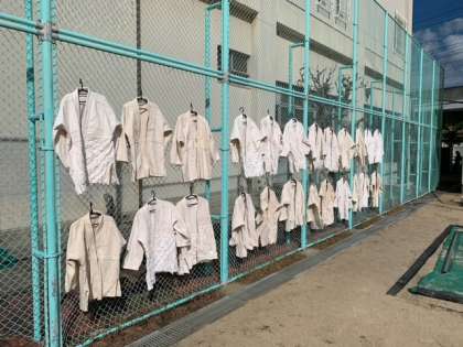 午後からちょうど良い日差しでした。柔道着を干しています。