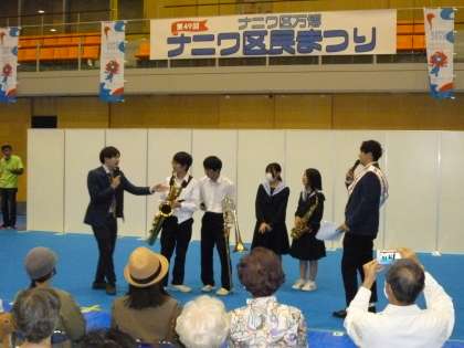 演奏後には、浪速区すみます芸人のチャイルドプリンスさんからインタビューです。さすが浪速っ子、上手に答えを返していました。