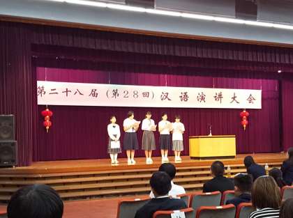 本校からは、2名舞台で弁論を行います。また司会もしっかりやってくれています。