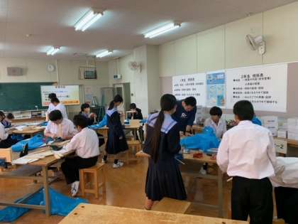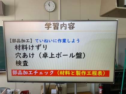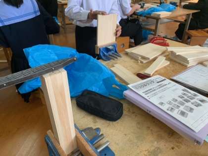 家庭科と半分に分かれての授業です。本立を作成しています。