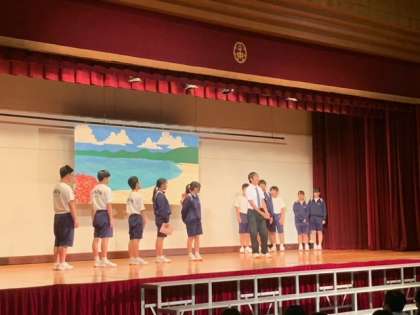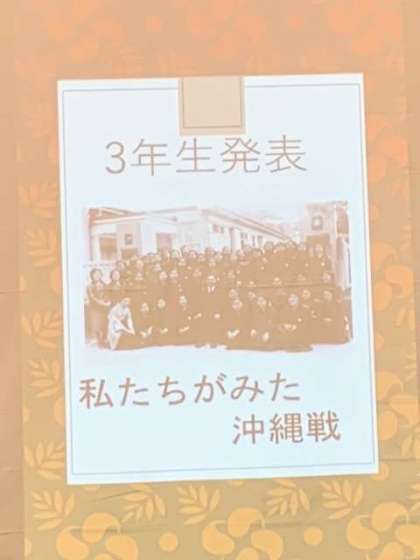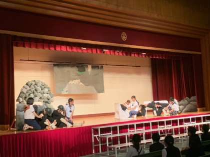 3年生は、3年間の人権学習の集大成、沖縄の反戦劇です。木津中学校は今年4年振りに沖縄へ修学旅行に行き、実際にガマへ入って来ました。