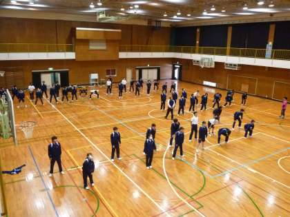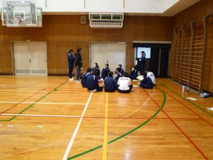本日は、ダンスの出前授業2回目です。前半は前回の復習とイントロの動きの確認、後半はメンバーで相談してフォーメーションや振付を考えます。