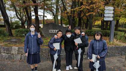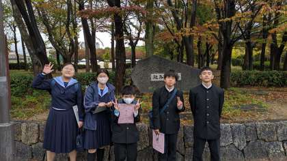 事前に学んだ大阪城周辺の戦跡を実際に見て学ぶために、班ごとでフィールドワークに出発しました。