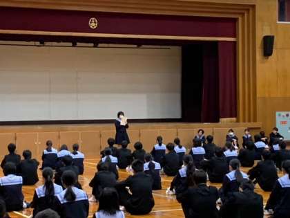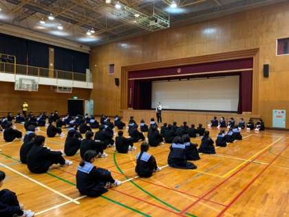 11日(月)全校集会の様子です。寒くなって少し集合の状態が悪いようです。