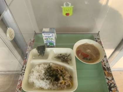 献立は、れんこんのちらしずし、ぞう煮、ごまめ、牛乳です。今日は正月の行事献立です。美味しくいただきました。