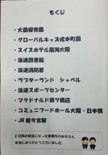楽しさだけでなく、厳しさや仕事の大切さを感じた生徒が多かったようです。お世話いただいた事業所のみなさん、本当にありがとうございました。