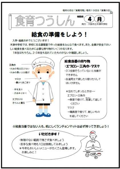 本日(8日)、「食育つうしん」を発行しました。