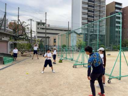 木津中野球部は、加賀屋中(住之江区)と合同チームを組んでいます。今日は木津中一緒に練習をしています。