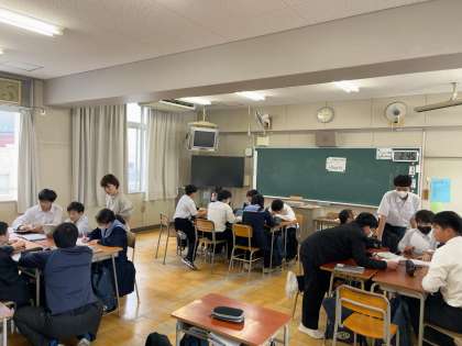 5月2日(木曜日)に万博公園で行う校外学習に向けて、班活動を行うための役割分担などを話し合っています。
