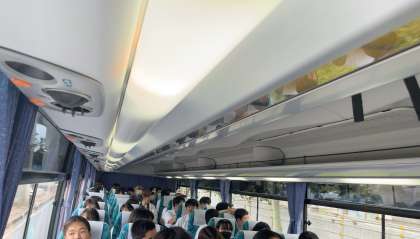 全員の荷物をピックアップした後、空港を出て、これから3日間お世話になるバスに乗車しました。