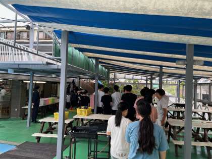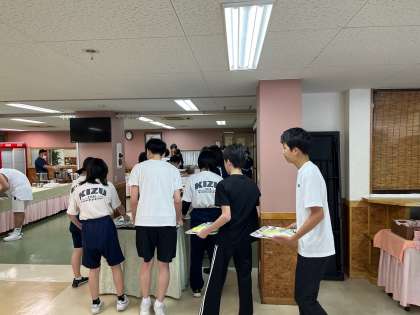7時に起床した生徒たちは、洗面等を済ませて、時間通りに朝食会場にき来ました。