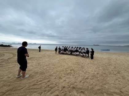そして雨が止んできたので、再度、浜辺に行って、全員で集合写真を撮りました。