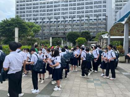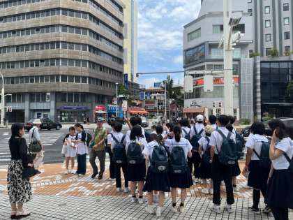 県庁前で諸注意を受けた後、生活班ごとに約3時間の散策に出ていきました。