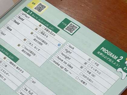 新出単語を短時間で集中して覚える取組を行っています。