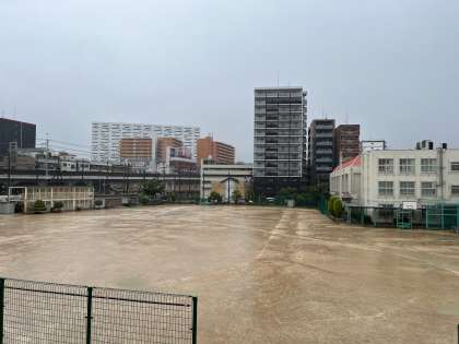 現在も大雨警報が大阪市内で発令中であることから、下校時には滑りやすく車の水はねもあることから足元に気をつけることや、傘をさしているので視界が悪くなり周囲の人や車に気をつけるよう注意をしました。