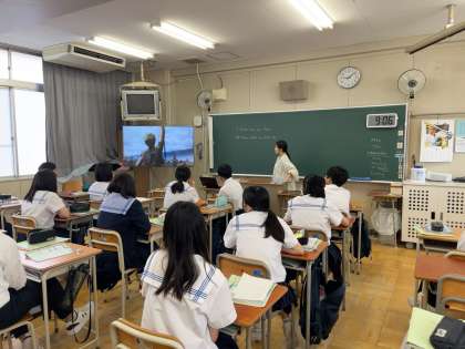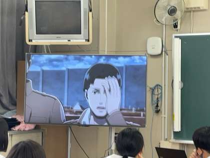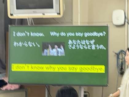 アニメに流れている英語の歌の歌詞を聞き取りながら、意味を理解するとともに、間接疑問文の学習に繋げています。
