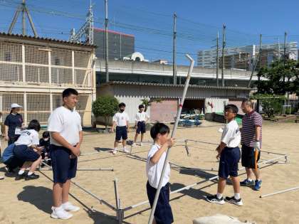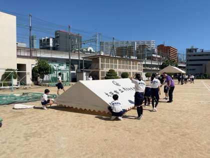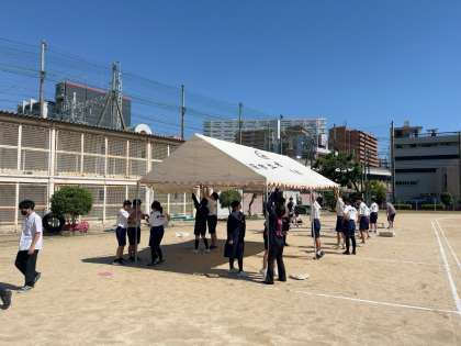 生徒席で使用するテントに設営を2年生のみなさんが取り組んでくれました。