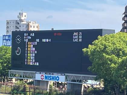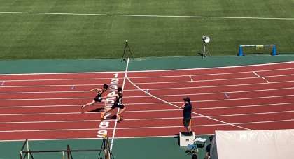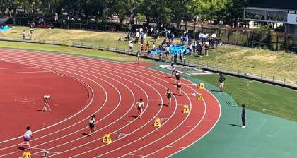 写真は、男子共通の4×100mリレーの予選です。レース内では3着でした。