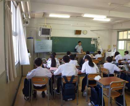 世界の気候について学んでいます。学習端末も活用しペアやグループで深い学びにつなげます。