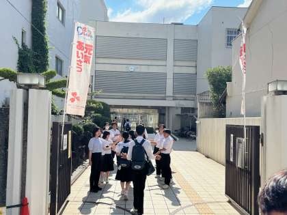毎日、生活委員のみなさんが、正門で挨拶&ハンドタッチ運動に取り組んでいます。