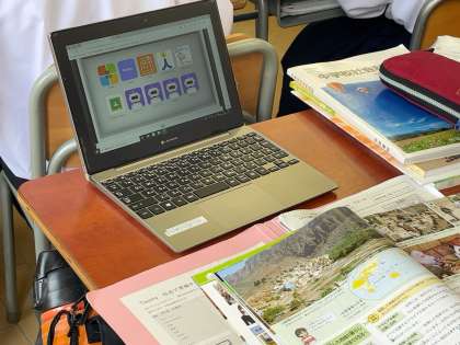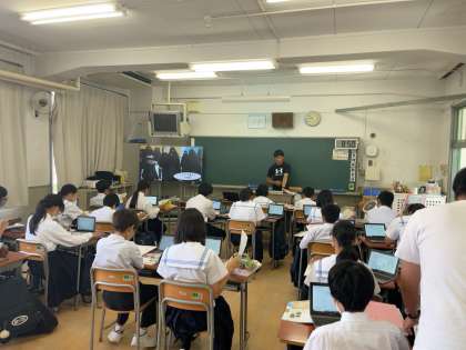 学習者用端末を使って、調べ学習に取り組んでいます。