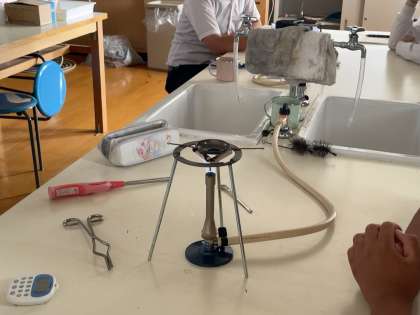 銅をガスバーナーで熱して、酸化銅を作り、質量(重さ)の違いを調べる実験に取り組んでいます。