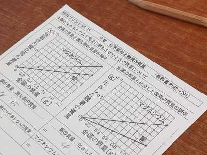 銅から酸化銅を作った際の重さの変化について学習をしています。