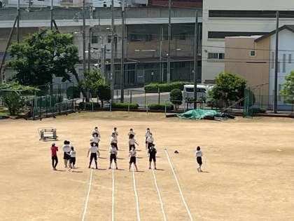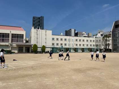 女子は、準備運動として、音楽のリズムに合わせながら、さまざまなステップを踏んでいます。