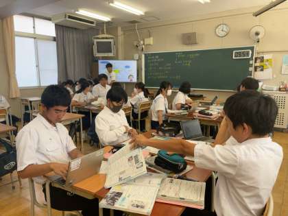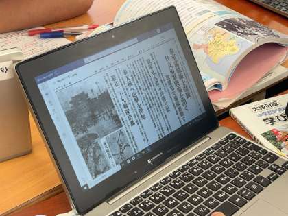 「満州事変」に対する日本の主張と中国の主張の違いについて、当時の新聞記事などの史料を見ながら、グループで話し合っています。