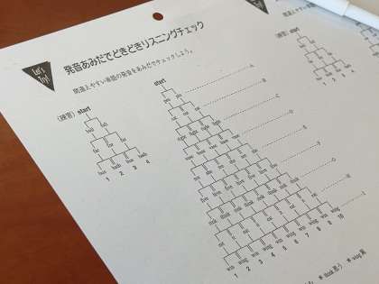 単語の発音を聞き分けながら、あみだを進めていくゲームに取り組んでいます。