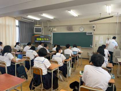 迷惑動画のニュースを見ながら「情報モラル」について学習しています。