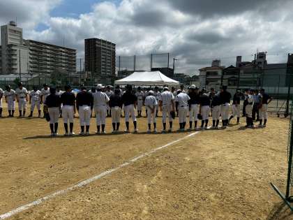 今日は日曜日ですが、住吉区の三稜中学校と試合をしました。1戦目は3-1で勝ち、2戦目は5-6で負けました。テンポの良い締まった試合になってきました。日頃の努力が実っています。