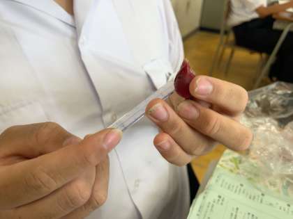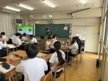 収穫したラディッシュを観察して、プリントにまとめる作業を班ごとで取り組んでいます。