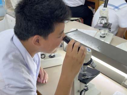 顕微鏡を使って細胞の観察に取り組んでいます。スマートフォンでも綺麗に撮影することができました。