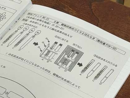 植物の光合成と呼吸について、先生が行った実験結果から考察を深めています。