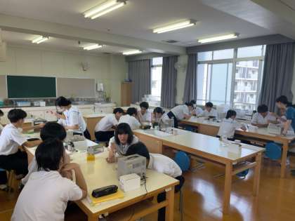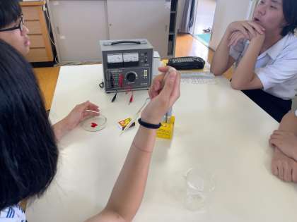 希塩酸の電気分解によって、水素と塩素が発生しますが、塩素ができたかどうかを確認する実験に取り組んでいます。