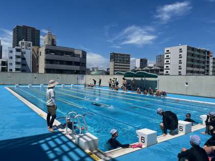 男女ともプールで水泳に取り組みました。それぞれのレベルに応じて課題に取り組んでいます。