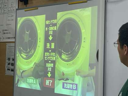 プログラミングの学習に取り組んでいます。身近な家電製品にもプログラミングされたものがあります。授業では洗濯機を例に理解を深めています。