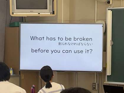 グループ対抗で、先生は考えた英語による「なぞなぞ」に取り組んでいます。