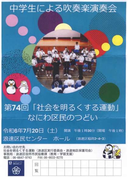 【吹奏楽部】『第74回「社会を明るくする運動」なにわ区民のつどい』に今日の午後出演します!