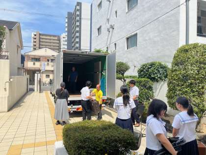先ほど、吹奏楽部のみなさんは、楽器をトラックに積み込み、会場へ向かいました。