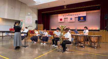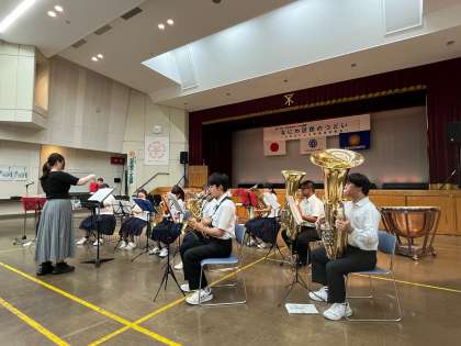 木津中学校吹奏楽部は、来週にあるコンクールで発表する曲と、難波中学校との合同演奏の2曲の計3曲を披露しました。