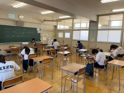 初日の今日は、数名の生徒が登校して、夏休みの宿題に取り組んでいます。