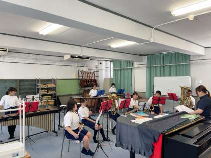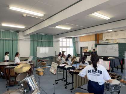 週末のコンクールに向けて、朝から練習に取り組んでいます。発表曲を合奏し、細かなところを確認しながら進めています。