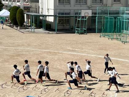 陸上部も同様、ウォーミングアップをしっかり取り組んでいます。