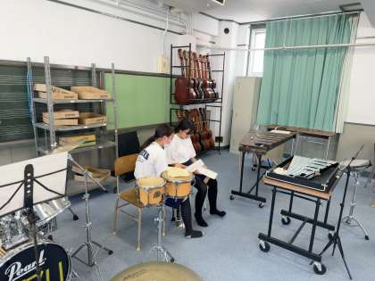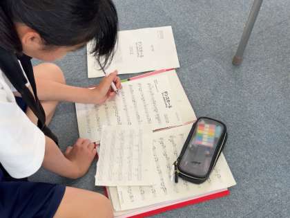 お盆明けの8月19日に予定されている「第3教育ブロック音楽会」に向けて練習が続いています。まずは、楽譜をしっかり読み込んでいます。