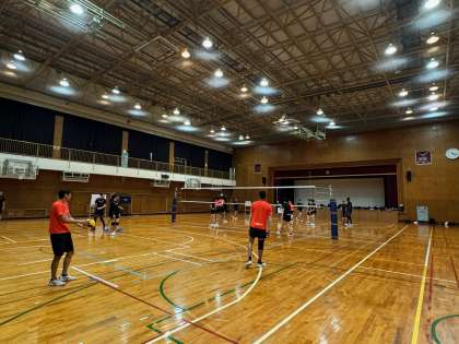 お昼からのバレーボールクリニックが中止となりましたが、チーム本体の練習は予定通り、本校体育館にて行われています。