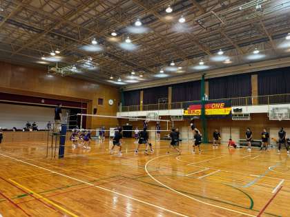 本日午後、本校体育館にてクボタスピアーズ大阪が遠征中の東京学芸大学と練習試合をしています。