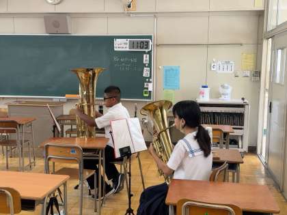 始業式後にパートごとに分かれて練習に取り組んでいます。